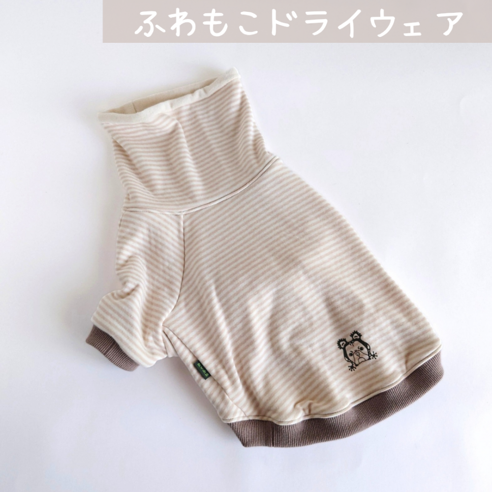 ふわもこドライウェア /ボーダーベージュ/カンちゃんプリント【完成品】