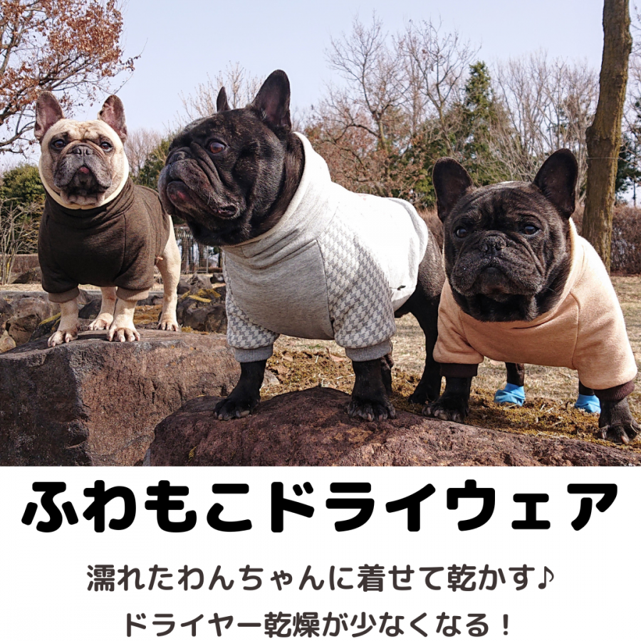 ふわもこドライウェアを着せてやれば、お風呂後のケアが格段に楽に♪